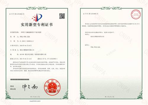 重慶天耀建材有限公司榮獲多項(xiàng)專利證明