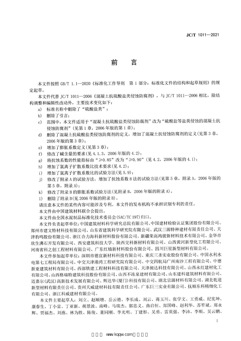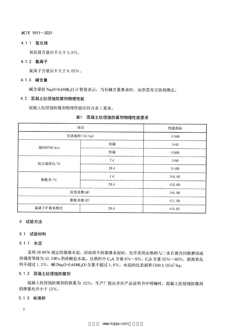 JC∕T 1011-2021 混凝土抗侵蝕防腐劑